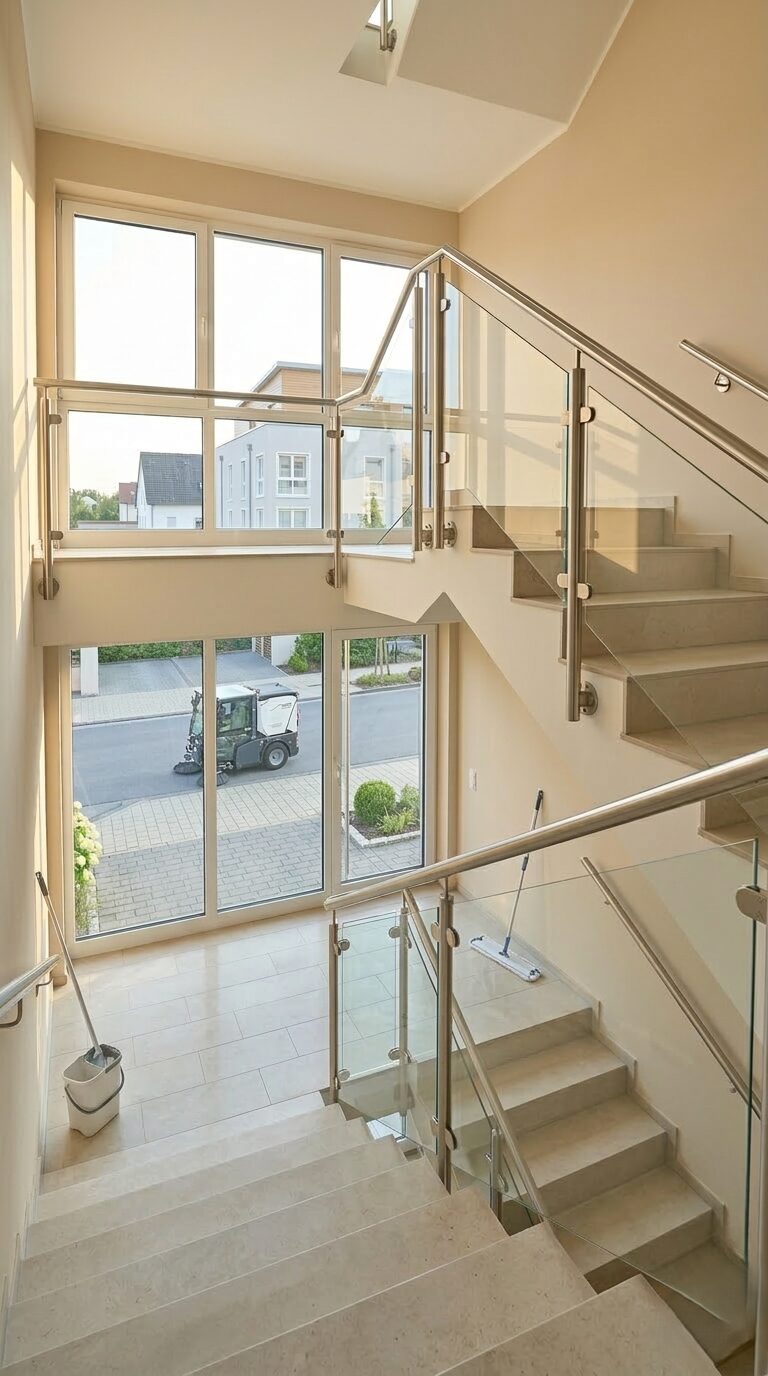 Gründliche und regelmäßige Reinigung Ihrer Büroräume für eine angenehme und hygienische Arbeitsumgebung.Treppenhausreinigung